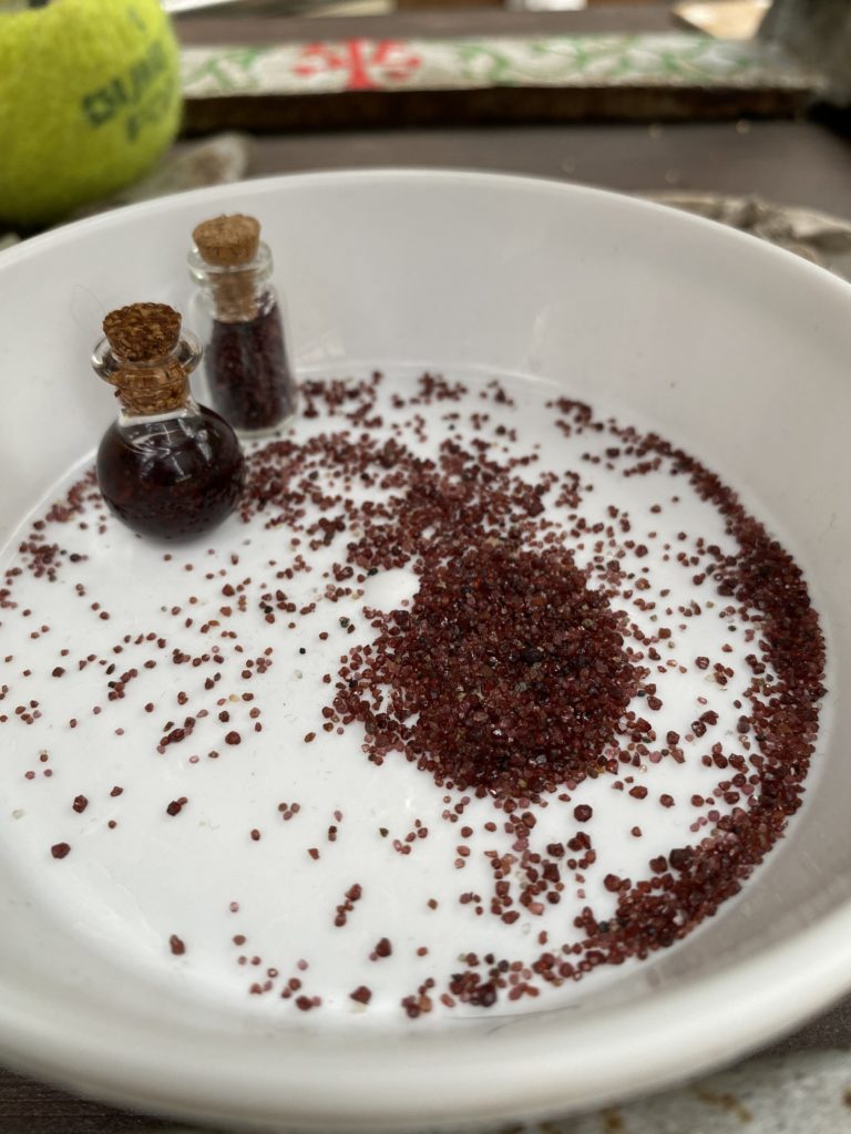 会員の娘さんが室生でカフェをされているのですが、そのカフェが室生川に隣接していて、河原でガーネットの採取ができると定例の会議で発言され、それをプログラムとして体験することに。また、会員さんは陶芸家でその時期が陶芸の窯を年に一度だけ火を入れている時期と重なるということで、宝石採取と陶芸体験のプログラムを実施しました。