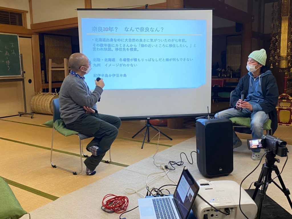 第4回目のゲストは大宇陀で「いろいろ屋すずき」という屋号で便利屋さんをされている鈴木さんにお越しいただきました。出身は北海道で二十歳の頃に東京に上京。そこからまた約20年後に「東京卒業」を決意して宇陀に移住されてきました。移住直後に大けがをされて「これは自分で仕事を作るしかない」と思われて自営の道を歩み始められたそうです。