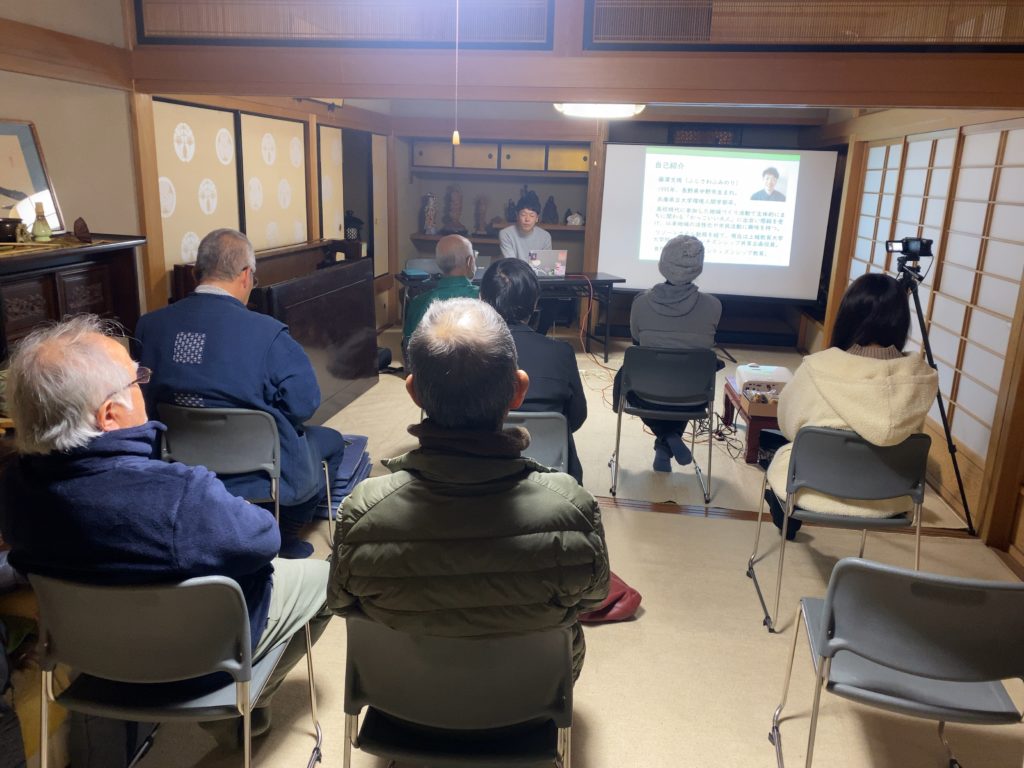 活動報告 【関係人口勉強会&交流会】 第13回目 交流会 @令和5年12月3日 2023.12.03 2026.02.06 活動報告 2014年から2017年までウダカツという学生インターンシップを宇陀の仲間と学生NPOならゆうしさんと一緒に行っていました。その時の学生の藤澤君が久しぶりに宇陀に来ますということで当時の話や現在の活動について話してもらいました。(参加者宇陀市4名) Post 記事のタイトルとURLをコピーする 【体験プログラム】ごぼう収穫体験(菟田野地区)@令和5年11月11日開催 前の記事 【体験プログラム】宇陀黒豆プロジェクト(大宇陀地区)収穫&はざかけ作業 @令和5年12月10日 次の記事 関連記事 【体験プログラム】薬草観察会(大宇陀地区)@令和6年3月26日 (火) 2024.03.27 【体験プログラム】祝い大根収穫体験(菟田野地区)@令和4年12月20~23日開催 2022.12.24 【体験プログラム】宇陀黒豆プロジェクト(大宇陀地区)草刈作業@令和5年7月16日他数日 2023.07.16 【開催レポート】ゆたかな宇陀総会(大宇陀/報恩寺)が行われました。@令和3年7月14日開催 2021.07.15 【関係人口勉強会&交流会】第14回目 交流会@令和5年12月27日 2023.12.28 ♪【関係人口勉強会&交流会】第6回目:交流会@令和4年7月10日 2022.07.11 【体験プログラム】味噌作り体験(大宇陀地区)@令和5年3月19日開催 2023.03.19 【体験プログラム】宇陀黒豆プロジェクト(大阪阿倍野)黒豆みそづくり @令和6年3月24日(日) 2024.03.25 コメント コメント ( 0 ) トラックバック ( 0 ) この記事へのコメントはありません。 この記事へのトラックバックはありません。 トラックバックURL 返信をキャンセルする。 名前(例:山田 太郎) ( 必須 ) E-MAIL ( 必須 ) - 公開されません - URL コメントを書く