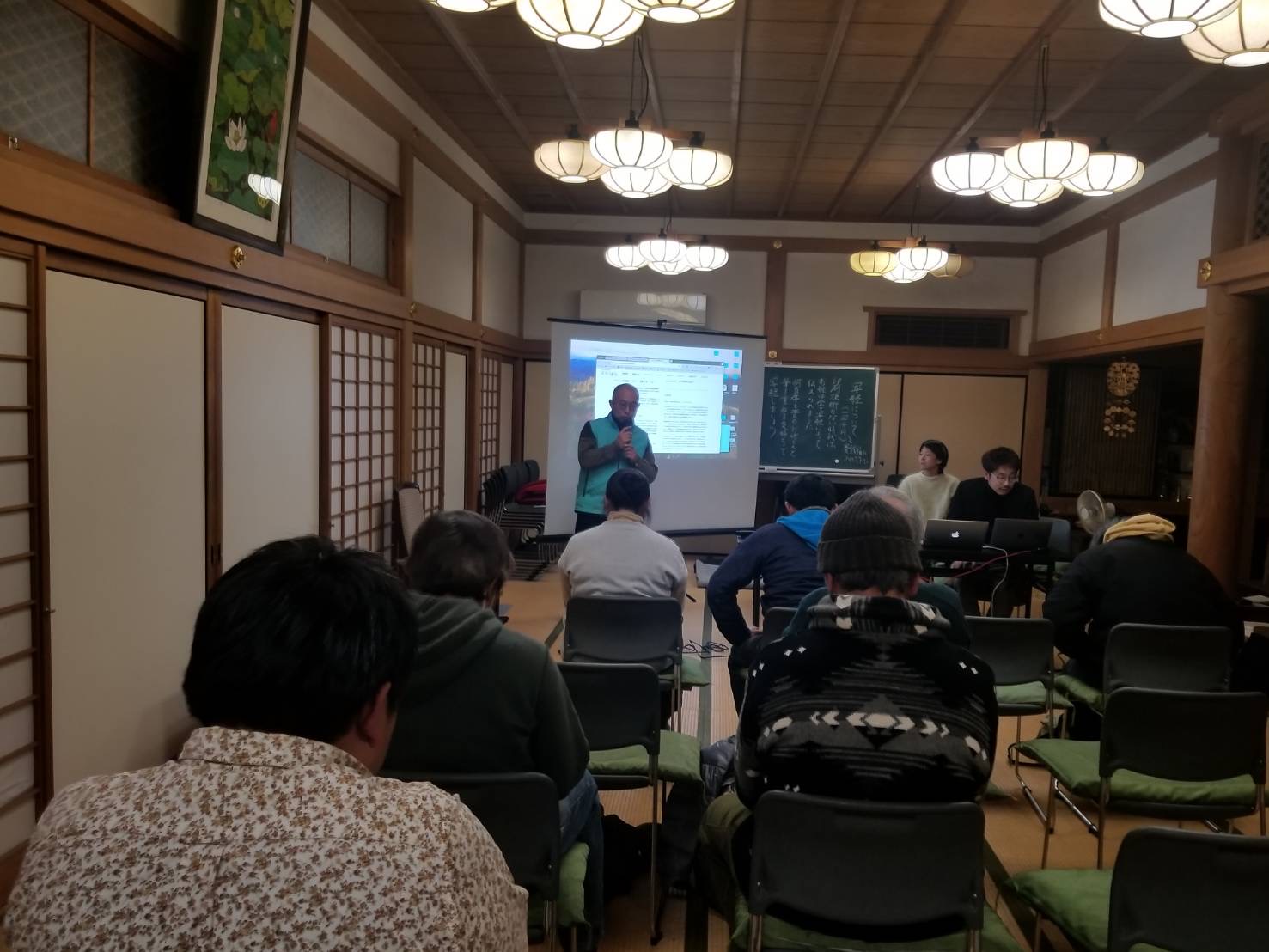 その後は、本日の参加者の皆さんから簡単な挨拶と感想を述べてもらいました。今回のはならあと宇陀松山のボランティアスタッフの方や喜楽座の岡田さん、池本先生も来られていました。