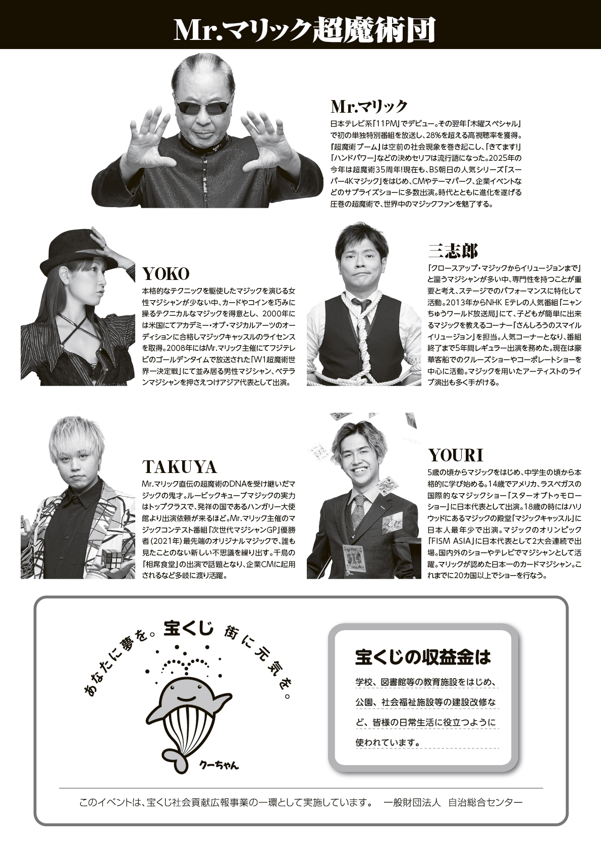 一般:2,500円(当日3,000円) 高校生以下:1,500円(当日2,000円) ※全席指定 前売りで完売の場合、当日券の販売はありません。 3歳未満は膝上1名まで無料で観賞可能です。(座席が必要な場合は有料) |